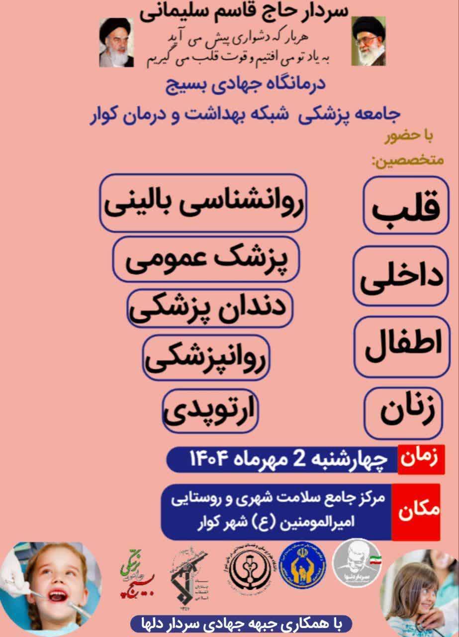 درمانگاه جهادی بسیج جامعه پزشکی شبکه بهداشت و درمان شهرستان کوار